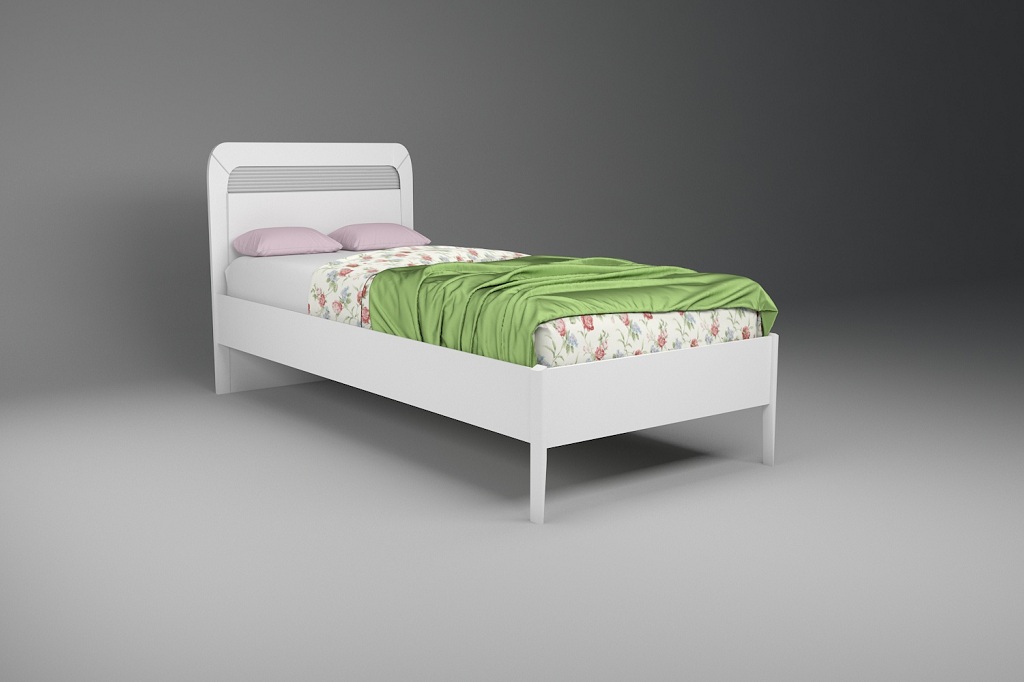 Фасад кровати выполнен из плит МДФ облицованный шпоном.