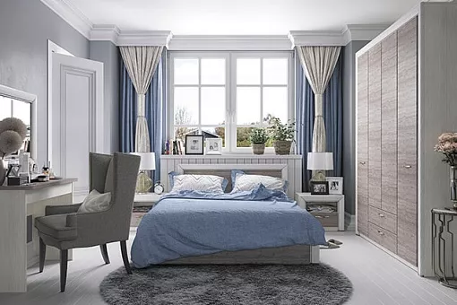 Материал: ЛДСП – 18 мм (изголовье и изножье) + МДФ – 25 мм (патинированные планки) – общая толщина 43 мм; ЛДСП – 22 мм (царги).