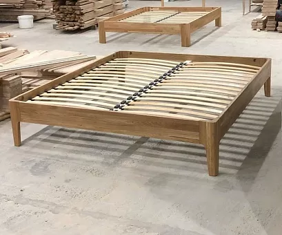 Данная кровать изготовлена полностью из массива дуба. 100% дерево во всех деталях. Это максимальная экологичность и безопасность вас и ваших близких при использовании. Мебель из массива дуба этой фабрики это залог здоровья и идеального сна. Кровать без головной спинки и массивными ножками прекрасно дополняет дизайн изделия. покрытие натуральным маслом. В основании расположены ортопедические ламели, оказывающие амортизирующую поддержку матрасу, что увеличивает срок его службы. Цветовое исполнение: масло Saicos или OSMO (натуральный, отбеленный, венге). Так же есть возможность выбрать три варианта исполнения сращенный дуб/дуб цельноламельный/дикий дуб. Все различия приведены картинках а так же вы можете уточнить информацию у наших менеджеров.