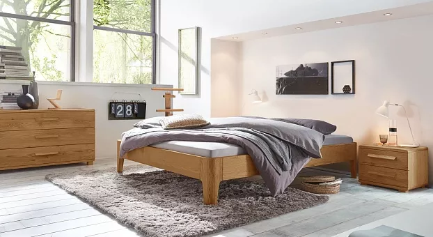 Данная кровать изготовлена полностью из массива дуба. 100% дерево во всех деталях. Это максимальная экологичность и безопасность вас и ваших близких при использовании. Мебель из массива дуба этой фабрики это залог здоровья и идеального сна. Кровать без головной спинки и массивными ножками прекрасно дополняет дизайн изделия. покрытие натуральным маслом. В основании расположены ортопедические ламели, оказывающие амортизирующую поддержку матрасу, что увеличивает срок его службы. Цветовое исполнение: масло Saicos или OSMO (натуральный, отбеленный, венге). Так же есть возможность выбрать три варианта исполнения сращенный дуб/дуб цельноламельный/дикий дуб. Все различия приведены картинках а так же вы можете уточнить информацию у наших менеджеров.