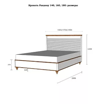 Габаритные размеры кровати: (ШхВхГ, мм.) 1504x1238x2086 мм;