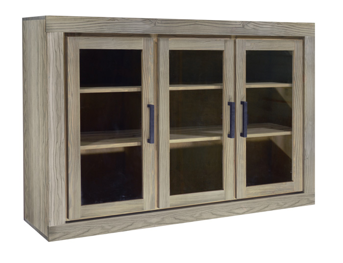 Секция верхняя КМБ-3.1 выполнена в стиле ЛОФТ из 100 % массива сосны. Является несамостоятельным предметом интерьера, а предназначена  для установки на тумбу TEMPO BLACK КМТ-160, в сочетании с которой образует полноценный вместительный буфет. За тремя стеклянными дверями находятся девять полок, ограниченных боковыми перегородками, которые также сделаны из массива.