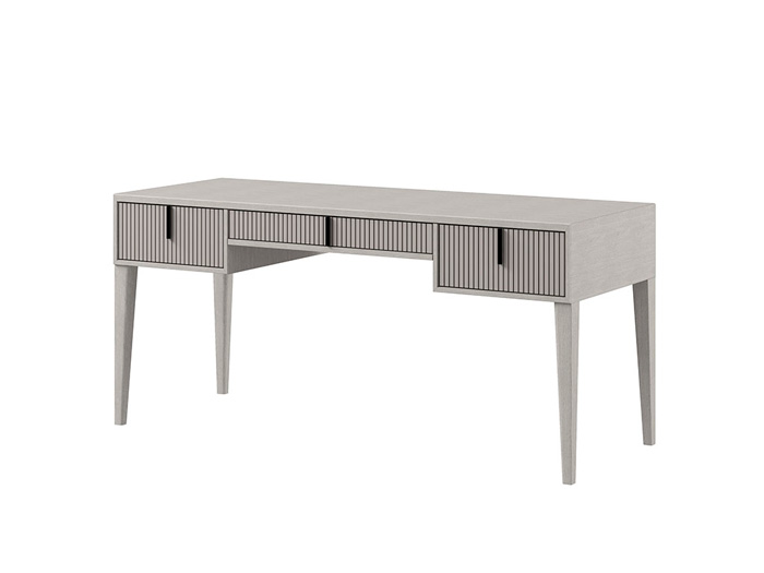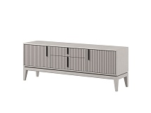 Фасады украшены вертикальными вставками. Фасады изготовлены из МДФ с фрезеровкой, опоры из массива березы.