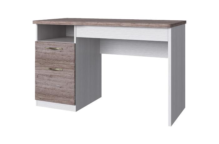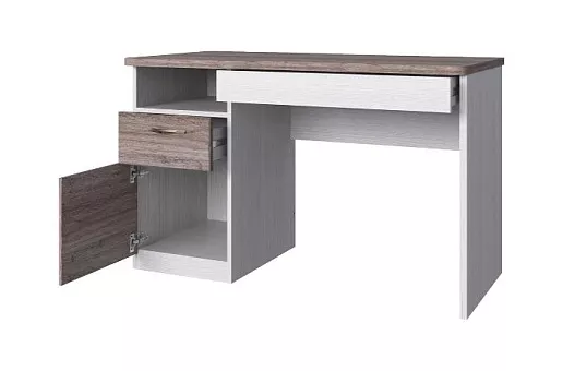 С помощью письменного стола OLIVIA возможно организовать рабочую или учебную зону, дополнительно используя такие элементы коллекции OLIVIA, как кровать 90 и 120, также предметы из шкафной и комодной групп. Стол письменный имеет прямую конструкцию. Конструкция стола письменного представляет собой столешницу (ширина – 1200 мм), под столешницей представлен выдвижной ящик (для хранения учебных принадлежностей, канцелярии и других предметов), тумбу с одним выдвижным ящиком и нишей, нишей за глухой дверью (расположение тумбы слева), панель соединительную. Дверь распашная, крепится на петли к боковому корпусу изделия.