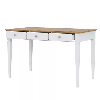 Классический стол из коллекции “Ольса” для поклонников светлых интерьеров. Широкая удобная столешница подойдет для работы за компьютером. Под ней расположено три выдвижных ящика для канцтоваров, документов и разных мелочей. Все детали сделаны из натурального массива дерева, что обеспечивает их прочность и надежность. Отличное приобретение для личного кабинета, гостиной или спальни. Широкая столешница удобна как для работы за компьютером, так и для рисования и другого ручного труда. Вес изделия 28 кг.