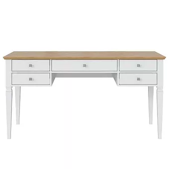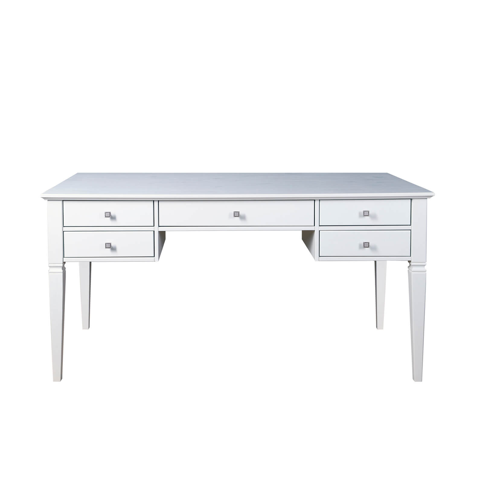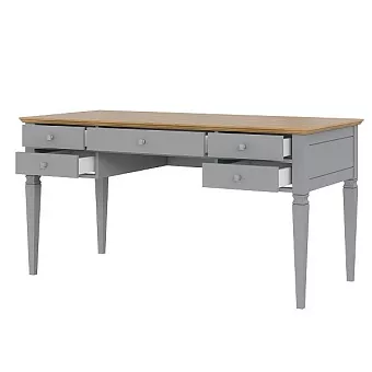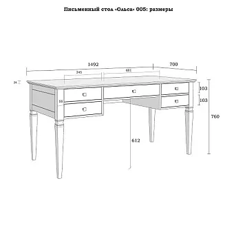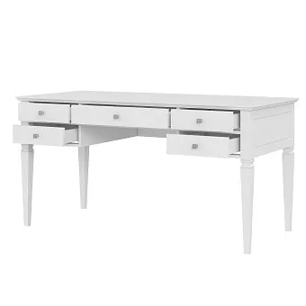 Классический стол из коллекции “Ольса” для поклонников светлых интерьеров. Широкая удобная столешница подойдет для работы за компьютером. Под ней расположено пять выдвижных ящика для канцтоваров, документов и разных мелочей. Все детали сделаны из натурального массива дерева, что обеспечивает их прочность и надежность. Отличное приобретение для личного кабинета, гостиной или спальни. Широкая столешница удобна как для работы за компьютером, так и для рисования и другого ручного труда. Вес изделия 40 кг.