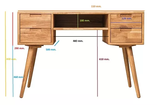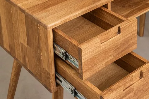 Письменный стол с выдвижными ящиками и нишей. Он легко впишется в любое пространство, будь то небольшой офис, кабинет или гостиная в скандинавском стиле. Используется 100% массив дуба. Покрытие интерьерными маслами от компании Хенкель. 100% ЭКО отделка, масла не выделяют никаких токсичных частиц. Гарантия защиты и долговечности древесины, сохранение ее текстуры, внешнего вида и естественности. Каркас-массив дуб, фасад- массив дуб. Задняя стенка, дно ящиков - фанера, облиц. шпоном дуб.