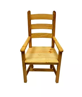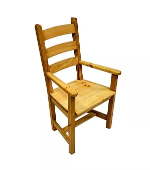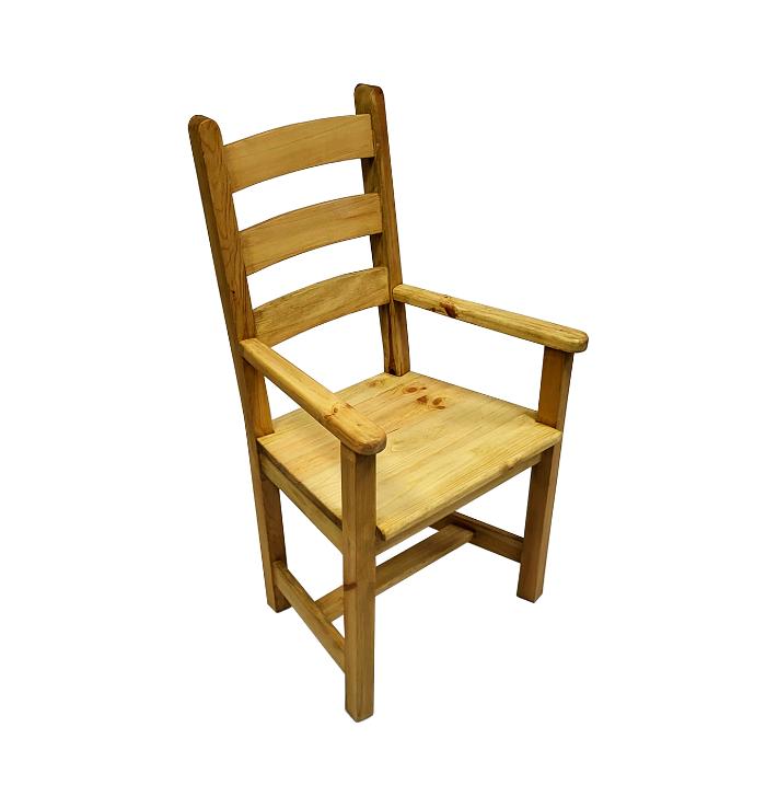 Стул-кресло выполнено из массив сосны. Поставляется в собранном виде. Размер посадочного места глубина 43 см, ширина 54 см. Высота от пола до посадочного места 45см. Тон мебели может отличатся от фотографии на сайте.