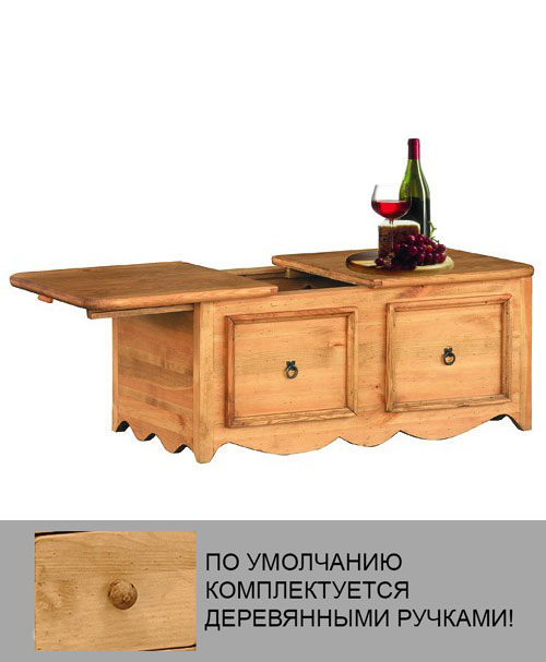 Сундук выполнен из массива сосны, обладает легким ароматом смолы. Поставляется в собранном виде. Вес изделия 35 кг. Комплектуется деревянными ручками "Грибок" (2 шт.). Тон мебели может отличатся от фотографии на сайте. При желании можно приобрести кованные металлические ручки в форме кольца или груши.
