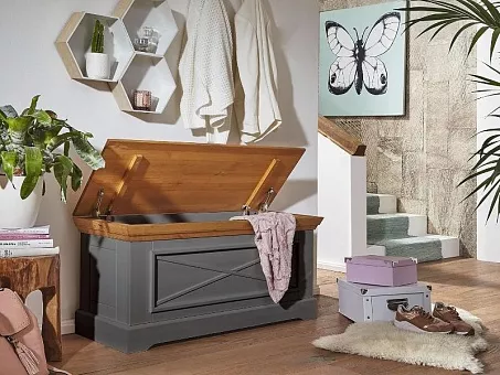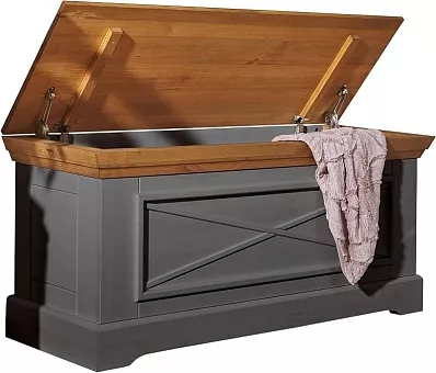 Сундук имеет откидную крышку, под которой находится отделение для хранения.