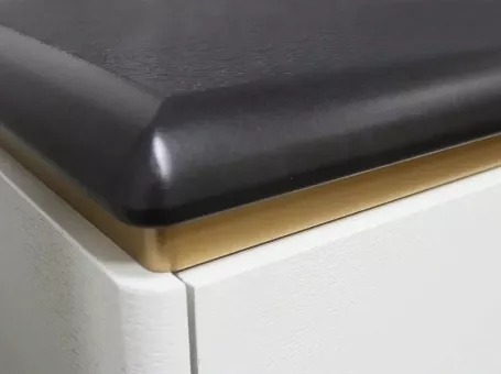 В этом наборе соединились классика и современность. Прямые линии фасадов подчёркивают изящество ножек и резного карниза. Привлекает и создаёт уют отсутствие острых граней: кромки боковин, крышек и карнизов скруглены.