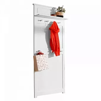 Вешалка “Рауна” отличается простым и функциональным дизайном. Отлично впишется в прихожую небольшой гостиной или студии. Оснащена крючками для верхней одежды и тремя для сумок. Широкая планка предохраняет обои от влажной и грязной одежды. Сверху предусмотрена полочка для головных уборов.