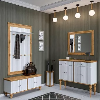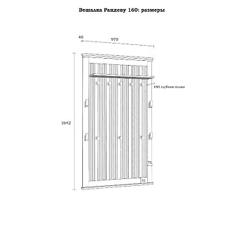 Вешалка настенная «Рандеву» 160. Классическая настенная вешалка из коллекции «Рандеву» - практичное приобретение для небольшой прихожей. Оснащена восемью крепкими крючками и зеркалом. Может использоваться в комплекте с другими подходящими по стилю предметами мебели или как отдельный элемент. Особенности Размеры вешалки на стену Рандеву 970 х 1642 х 40 (+ 180 мм., полка) мм; Изготовлена из соснового массива; Вес изделия 24 кг. Сборка при помощи немецкой фурнитуры; Модель представлена в цвете «белый лак-антик 24», «серый 7042/антик 24». Особенности покрытия Верхняя одежда часто бывает мокрой и грязной. Поэтому к мебели для прихожей предъявляют повышенные требования в части сопротивления влаге. Все поверхности данного изделия обработаны водными лаками и красками. Они успешно защищают древесину от проникновения воды, разбухания полотен, образования плесени и грибков. Безопасность такой обработки дерева подтверждена европейским сертификатом EN71-3. Фотографии могут не передавать точный цвет изделия.