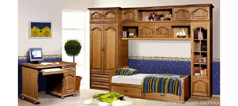 Модульная мебель серии Вилия-М позволяет создать уникальные наборы для прихожей, спальни, детской, кабинета, библиотеки. Фасады выполняются из массива дуба (рамки) филенки плита дсп шпонированная натуральным шпоном дуба.