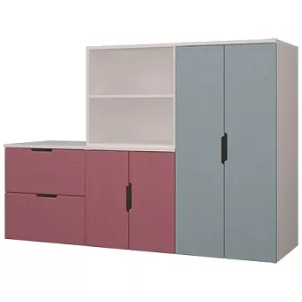 Набор мебели для детской Тимберс Кидс изготовлен полностью из бессучковой сосны высокого качества. Корпус изготавливается в белом цвете, варианты цветов фасадов: белый, коричневый, жёлтый, оранжевый, розовый, голубой, зелёный, крем, пепельный. Возможно комплектование фасадами без вырезной ручки. Полки настенные и декор приобретается отдельно. Фотографии могут не передавать точный цвет изделия.