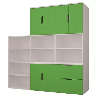 Набор мебели для детской Тимберс Кидс изготовлен полностью из бессучковой сосны высокого качества. Корпус изготавливается в белом цвете, варианты цветов фасадов: белый, коричневый, жёлтый, оранжевый, розовый, голубой, зелёный, крем, пепельный. Возможно комплектование фасадами без вырезной ручки. Полки настенные и декор приобретается отдельно. Фотографии могут не передавать точный цвет изделия.