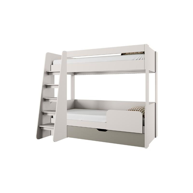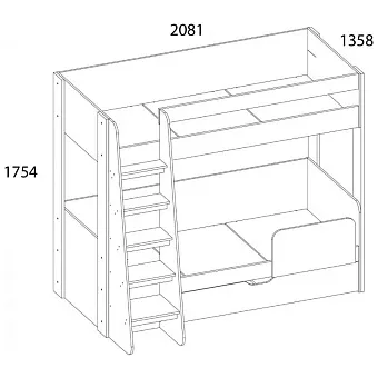 Кровать двухъярусная MODERN оптимальное решение организации зоны отдыха и сна для двух персон в детской комнате, если нет возможности установить две отдельные стоящие кровати. Конструкция кровати двухъярусной MODERN представляет два спальных яруса, выдвижной ящик в нижнем ярусе, основания – щиты ЛДСП, лестница – доступ к верхнему ярусу, бортик защитный. Особенностью элемента являются практичность, сохранение полезной площади для организации игровой или учебной зоны, стильность и комфорт.