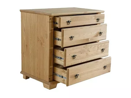 Серия мебели Хлоя из массива сосны. На крышках и и фасадных элементах толщина 3 см. толщина остальных деталей 1,5-2 см. Фурнитура выполнена из метала так же в изделии присутсвуют кованные элементы. Ящики с шариковыми направляющими. Фасады типа Жалюзи не сковозные что защищает внутренние отделения от пыли и света.