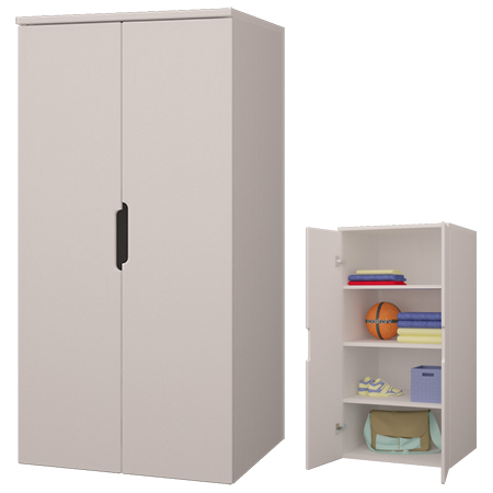 Мебель для детской Тимберс Кидс изготовлена полностью из безсучковой сосны высокого качества. Корпус изготавливается в белом цвете, варианты цветов фасадов: белый, коричневый, жёлтый, оранжевый, розовый, голубой, зелёный, крем, пепельный. Шкафы и тумбы при желании комплектуются опорами (ножками) за отдельную плату. Возможно комплектование фасадами без вырезной ручки.
