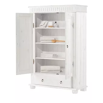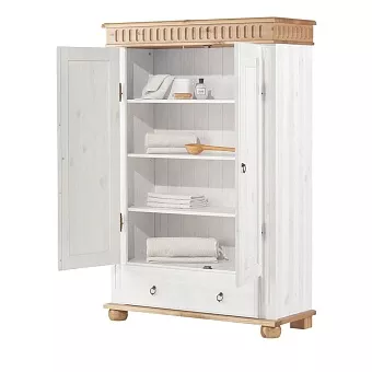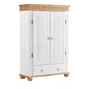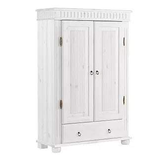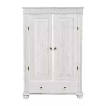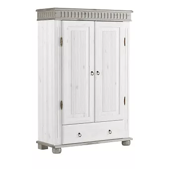 Белорусский шкаф “Хельсинки 21” в скандинавском стиле прекрасно впишется в любой современный интерьер. За двумя распашными дверями скрывается 4 полки для хранения личных вещей, а внизу есть выдвижной ящик. Ручки и петли “под старину” придают ему дополнительный шарм.