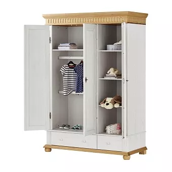 Трехстворчатый шкаф “Хельсинки” без труда вместит весь гардероб вашего ребенка. Оборудован двумя выдвижными ящиками, секцией со штангой для одежды, вместительными полками, в том числе и для головных уборов. Это прочная и долговечная конструкция, которая обладает оригинальным и современным дизайном.