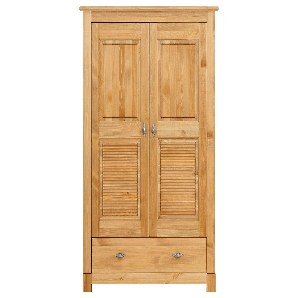 Эта модель двухдверного шкафа «Рауна» 21-180 придется по нраву тем, кто любит минимализм и практичность. Выполнена в стиле кантри из натурального дерева. Внутреннее наполнение предусматривает только самое необходимое: штангу, полку для головных уборов. Под дверями также есть два выдвижных ящика.