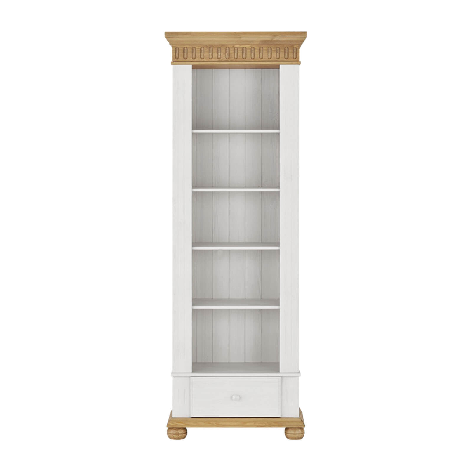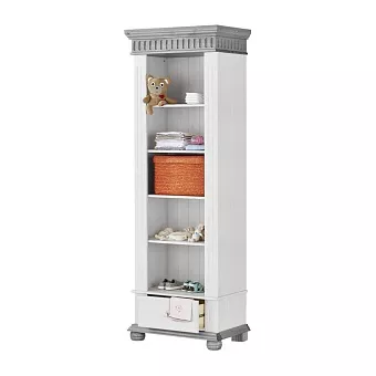 Стеллаж “Хельсинки” предназначен для детской комнаты или небольшой гостиной. Пять удобных полок сохранят в порядке ваши книги, фотографии и сувениры из поездок. Внизу находится выдвижной ящик для мелочей.
