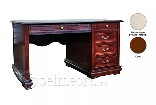 Набор для библиотеки – продолжение программы «Оскар». Те же изогнутые линии, искусные кружева, налёт старины на шкафах предназначенных для хранения книг, сувениров, альбомов и других дорогих для сердца вещей. Прекрасным дополнением идёт к шкафам письменный стол с широкой рабочей поверхностью, маня к себе многочисленными ящиками .