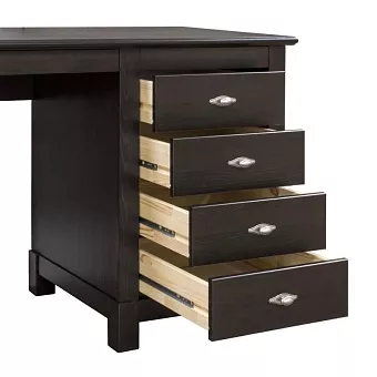 Простой и удобный письменный стол “Рауна 04 1-тумбовый из массива сосны” в экологичном стиле станет украшением вашего кабинета. Благодаря наличию тумбы с четырьмя ящиками с одной стороны.