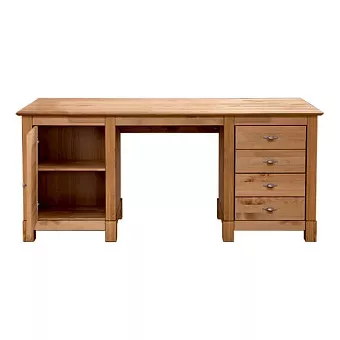Широкая поверхность стола Рауна-14 позволяет эффективно использовать максимум пространства. Одна тумба с дверцей имеет только одну полку, другая - 4 вместительных выдвижных ящика.