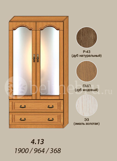 Коллекция производится в цветах "Медовый дуб" (ПМП), "Натуральный дуб" (Р-43) и "Эмаль золотая" (ЭЗ)*
