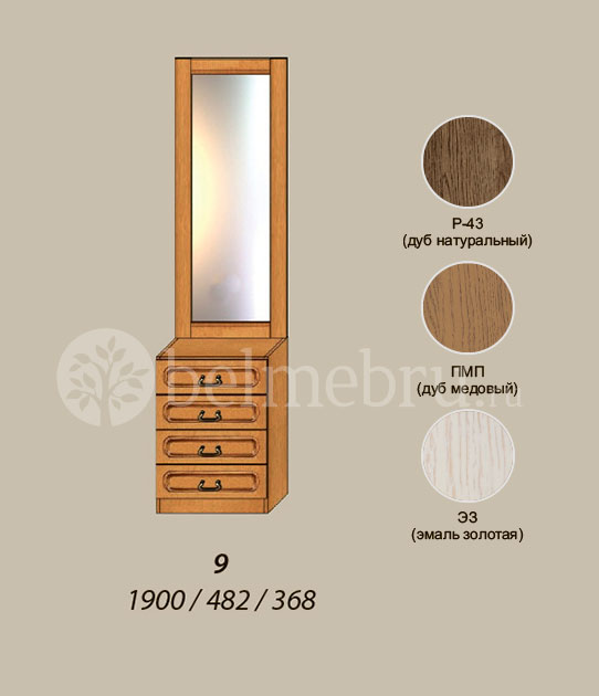 Коллекция производится в цветах "Медовый дуб" (ПМП), "Натуральный дуб" (Р-43) и "Эмаль золотая" (ЭЗ)*