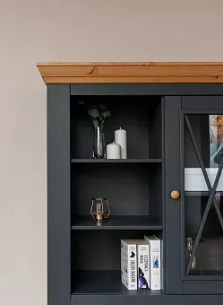 1. Производится из массива сосны в цветовом варианте: "белый воск/антрацит", как и коллекция Бейли.