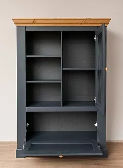 2. Для выдвижных ящиков используется система роликовых и шариковых направляющих фирмы Хёфеле. Комод имеет одну стеклянную и одну откидную дверку, за стеклянной дверкой одна деревянная полка.