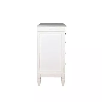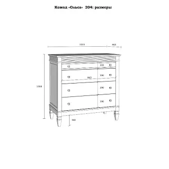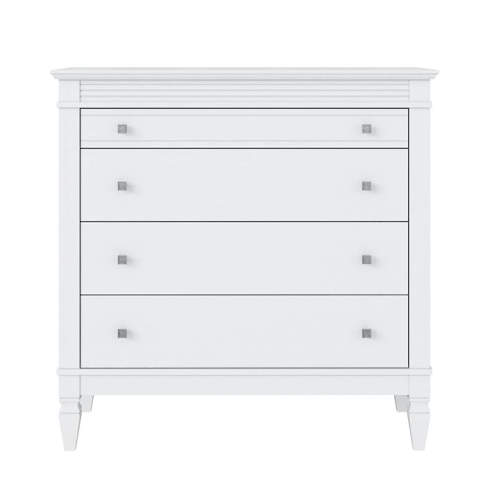 Комод оснащен четырьмя широкими ящиками. Фурнитура на ящиках с доводчиками. Высокие ножки обеспечивают оптимальный доступ при уборке.
