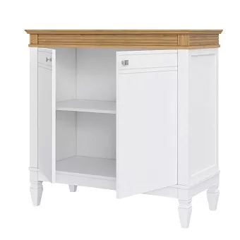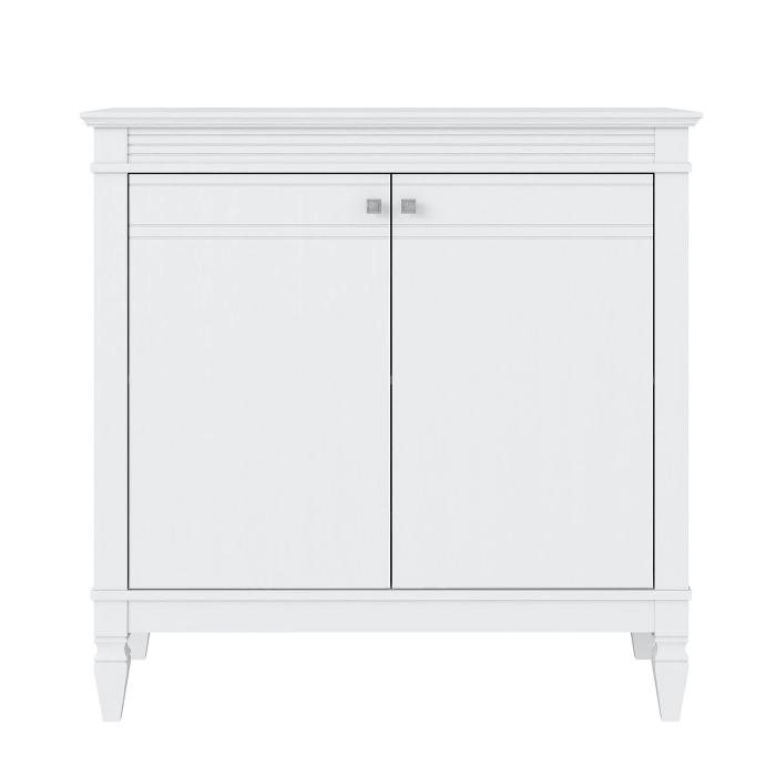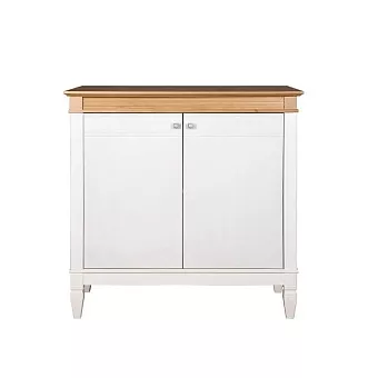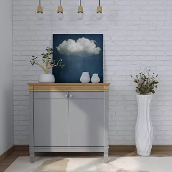 Комод оснащен двумя распашными дверками с полкой внутри. Фурнитура на дверях с доводчиками. Высокие ножки обеспечивают оптимальный доступ при уборке.