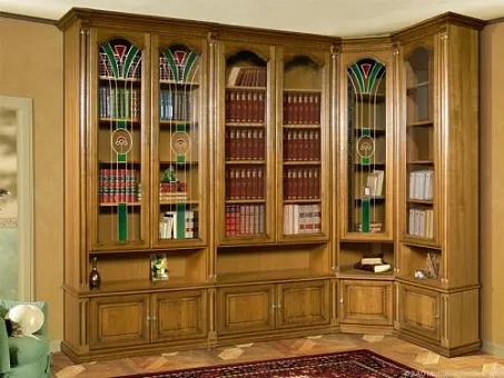 Если у вас много книг – серия Д9 решит Ваши задачи. Фасад – массив дуба. Каркас – ДСП облицованная шпоном дуба. Краситель – Давиль с патиной.