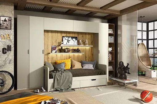 Панель стеновая 130H MODERN - эстетическое дополнение в интерьере молодёжной/детской комнаты. Соединяет определённый набор предметов мебели MODERN в привлекательную и организованную композицию. Если участвует в организации рабочей/учебной зоны молодёжной/детской комнаты, то рекомендуется использовать такие позиции, как стол письменный 100/120/130, шкаф навесной 1D/130-40 и элементы шкафной группы с необходимыми размерами. Конструкция представляет соединение двух панелей прямоугольной формы ЛДСП. Кодировка «130» обозначает ширину изделия, «H» - изделие имеет большую высоту в сравнении с панелью стеновой 130 MODERN, представленной в коллекции.