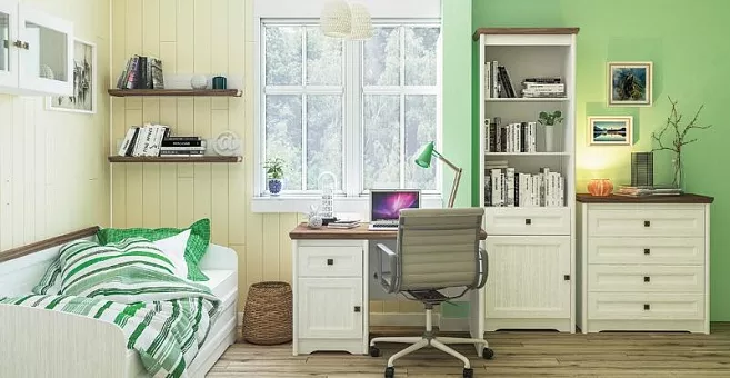 Коллекция мебели Тиволи в скандинавском стиле, совмещает в себе черты уюта и практичности. В мебели используется два основных цвета: белый со структурой под дерево, и для создание контраста идёт тёмный цвет с текстурой дуба. Такая цветовая гамма мебели легко впишется в большинство интерьеров и будет идеальным решением для владельцев любой квартиры или дома.
