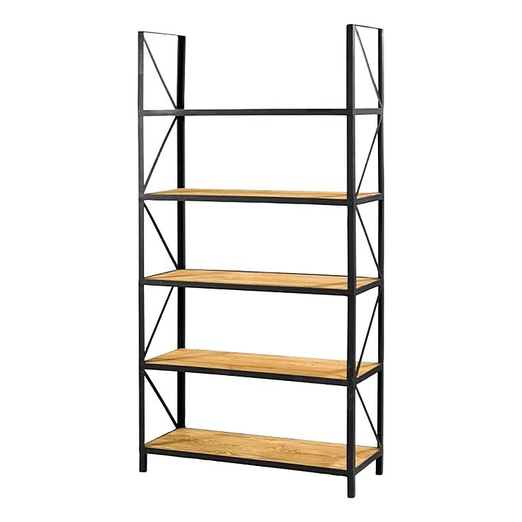 Все элементы Серии Лофт выполнены из массива сосны с металлическим каркасом. Поставляются в собранном виде, кроме кроватей. Стеллаж имеет 5 полок. Толщина полок 2 см. Тон мебели может отличатся от фотографии на сайте.