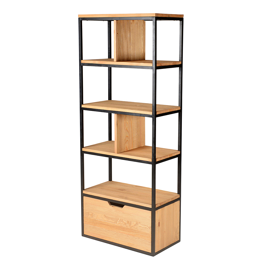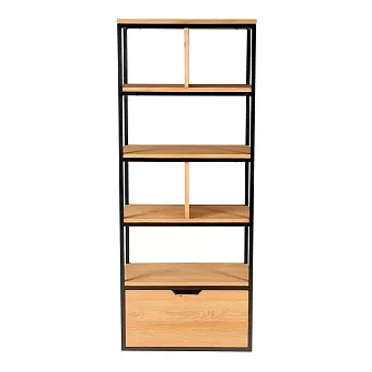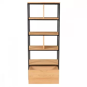 Все элементы Серии Лофт выполнены из массива сосны с металлическим каркасом. Поставляются в собранном виде, кроме кроватей. Стеллаж имеет 6 полок и 1 выдвижной ящик на шариковых направляющих. Толщина полок 2 см. Вес изделия 30 кг. Тон мебели может отличатся от фотографии на сайте.