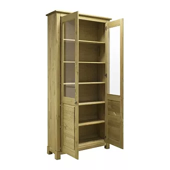 Двери выполнены из массива сосны. Этот комплект дверей пригодится, если вы предпочитаете закрытое хранение открытому. Их можно установить к подходящему по цвету стеллажу “Рауна” 20. Внизу - глухие, сверху установлено декоративное стекло, благодаря чему вы сможете красиво расставить любимые сервизы или другие памятные вещи.