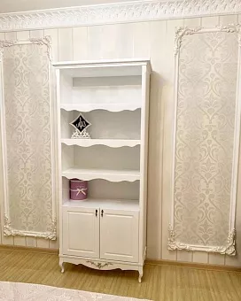Стеллаж Авиньон с ящиками выполнен из бука+МДФ, в стиле прованс. В стандартной комплекации имеет три открытых полки и одну полку за дверцами. При желание возможно изготовление с декором и патенированным декором на фасаде за дополнительную плату. Ручки металлические (Турция). Возможно изготовление в нестандартном размере, подробности уточняйте у менеджеров.