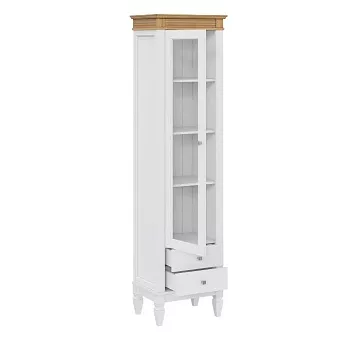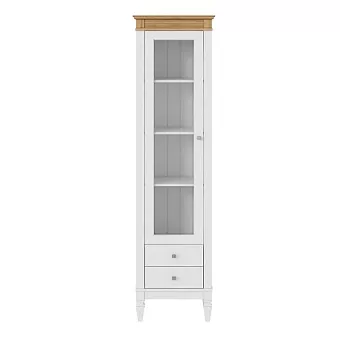 Этот белый стеллаж «Ольса» - отличный вариант для хранения любимых книг. Здесь они будут в полном порядке и всегда под рукой. Оснащен тремя вместительными полками за стеклянной дверью и двумя ящиками. Устойчиво держится на высоких ножках. Хороший вариант для гостиной, детской комнаты или кабинета. Может использоваться самостоятельно или в сочетании с другими предметами из этой коллекции.