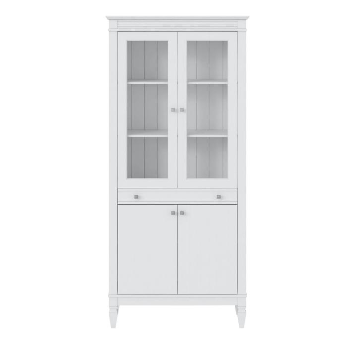 Этот белый стеллаж “Ольса” - отличный вариант для хранения любимых книг. Здесь они будут в полном порядке и всегда под рукой. Оснащен внутри вместительными полками, двумя дверями (филенка), двумя стеклянными дверями и одним выдвижным ящиком. Устойчиво держится на высоких ножках. Хороший вариант для гостиной, детской комнаты или кабинета. Может использоваться самостоятельно или в сочетании с другими предметами из этой коллекции.