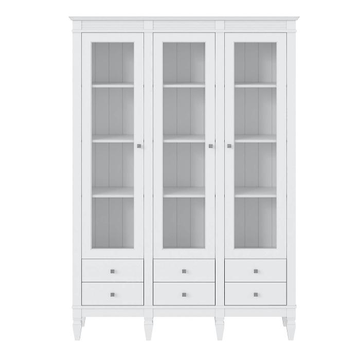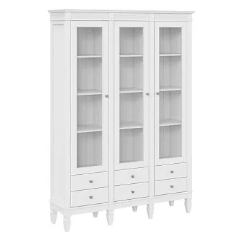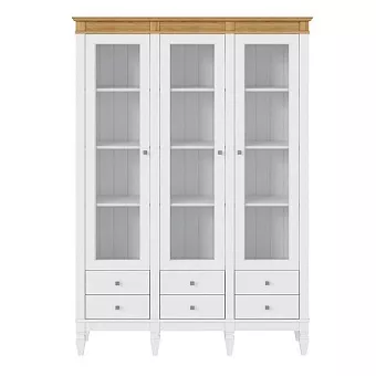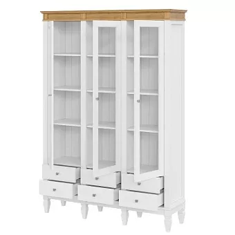Предлагаем стеллаж «Ольса» 303/006 из соснового массива – для тех, кто располагает большой библиотекой, коллекцией сервизов или сувениров. Выполнен в форме витрины с распашными дверями со стеклянными вставками. Дверные петли изготовлены австрийской фирмой Blum. Ручки - итальянцами Giusti. В нижней части находятся выдвижные ящики, которыми комфортно пользоваться за счет доводчиков. Изделие подходит для многих современных стилей интерьеров, например, скандинавского или лофта.