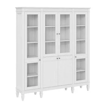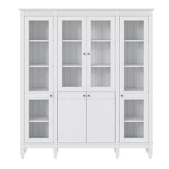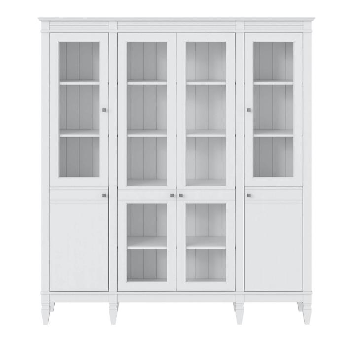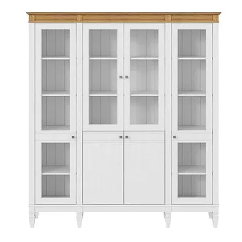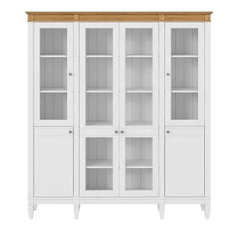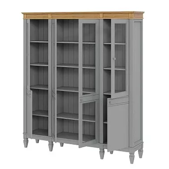 Большой и вместительный стеллаж «Ольса» - находка для просторной гостиной, библиотеки или кабинета. Здесь вы сможете разместить не только любимые книги, но и посуду и другие нужные вещи. Визуально разделен на три вертикальных секции. Оснащен четырьмя стеклянными распашными дверями и двумя дверями филенкой. Сделан из натурального массива, поэтому может выдерживать значительные нагрузки.