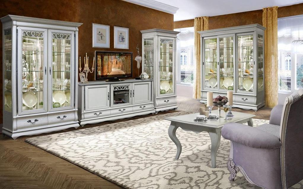 НАБОР МЕБЕЛИ ДЛЯ ГОСТИНОЙ ОСКАР 2 (цвет белая эмаль с патиной)