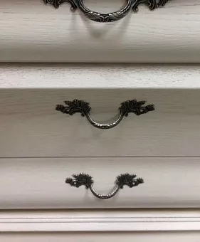 Отделка: варианты цвета — «орех» , «белая эмаль + патина тёмная», «венге+патина серебряная», лак – на водной основе.