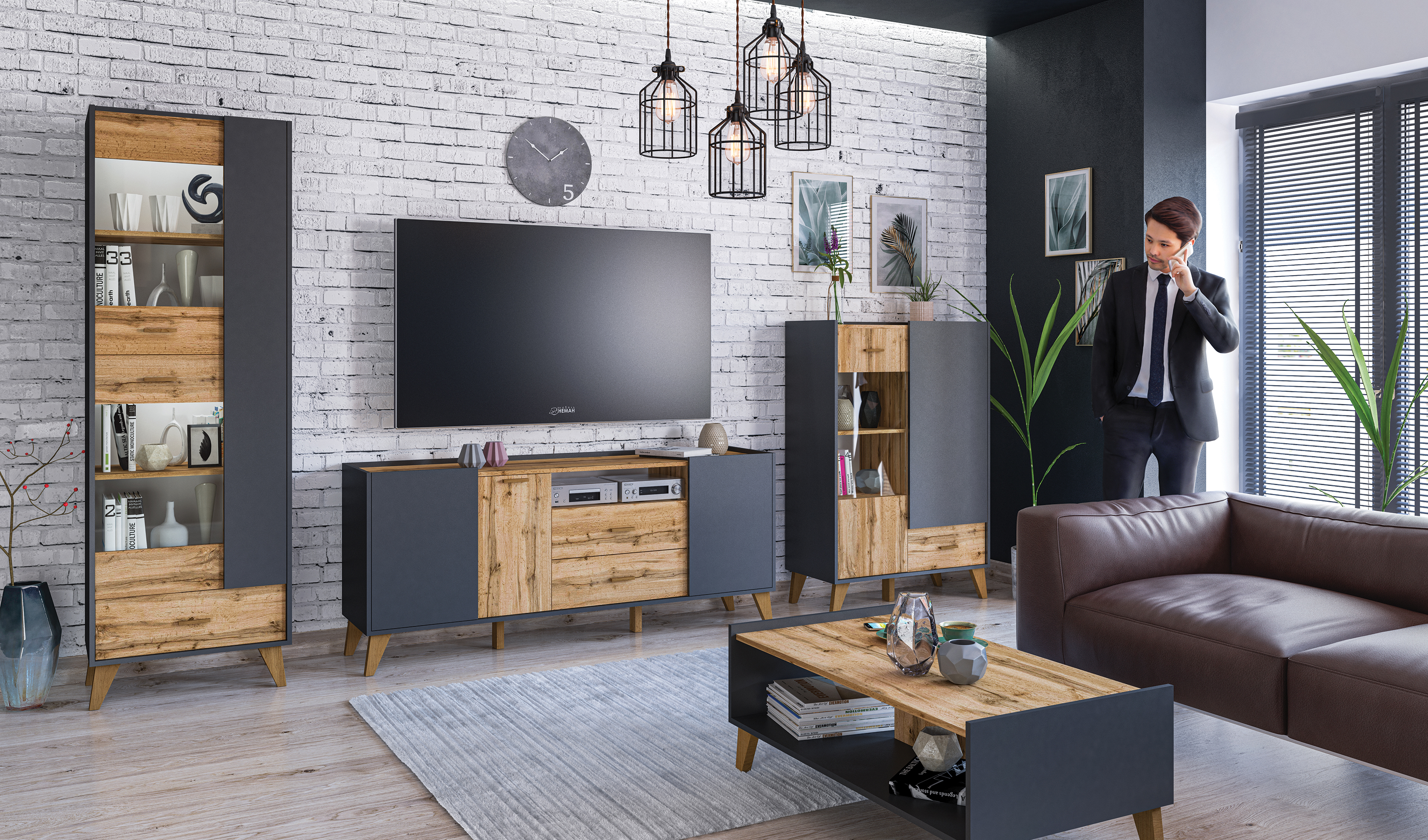 Набор мебели для гостиной Сканди (Графит/Дуб Вотан)